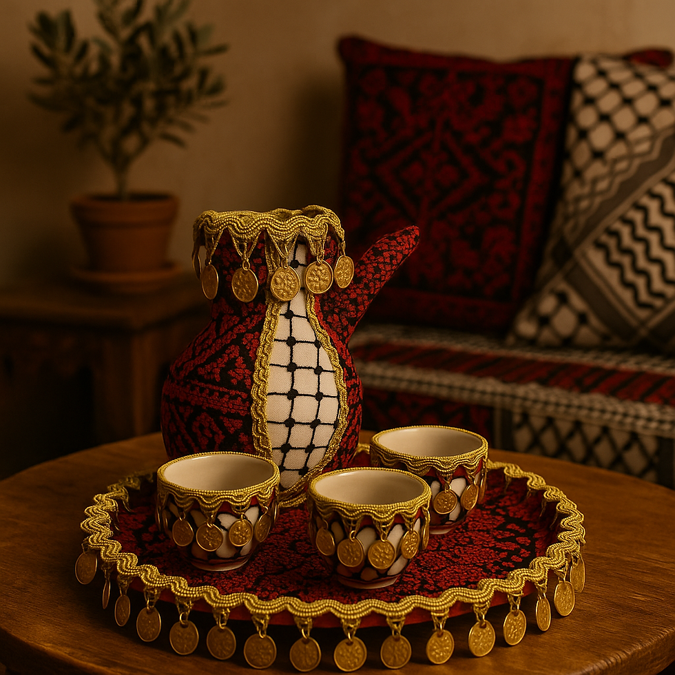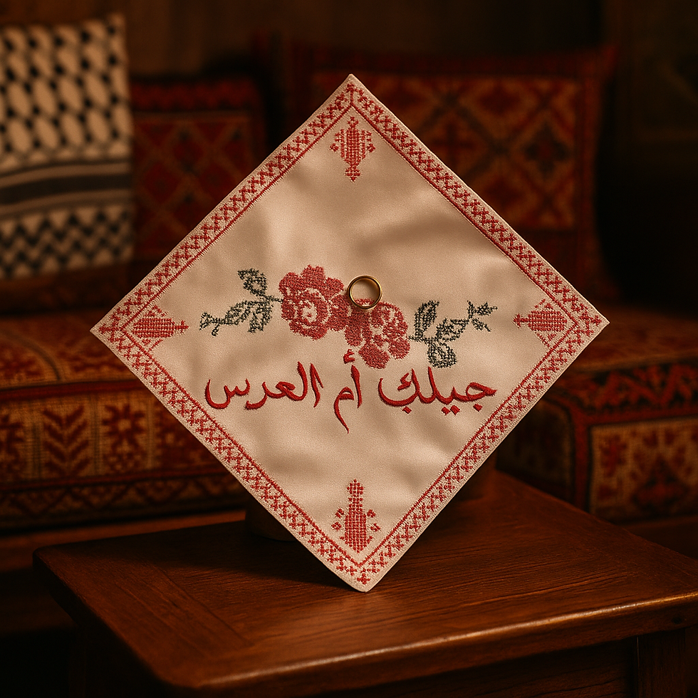 Für deine Feier stellen wir einzigartige, handbestickte Stücke bereit – echte kulturelle Kunstwerke, die seit Generationen Teil der palästinensischen Tradition sind. Jedes Element trägt Geschichte, Bedeutung und Handarbeit, die man sehen und fühlen kann.